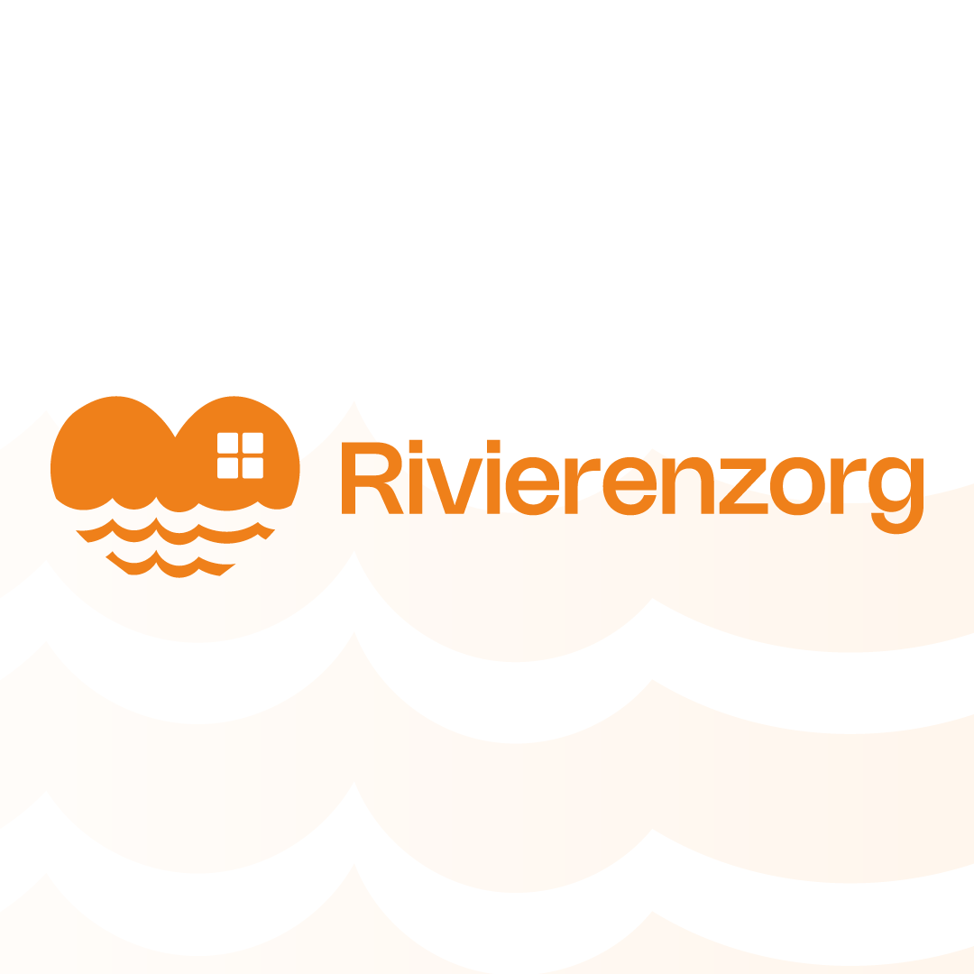 Het logo van Rivierenzorg bestaat uit drie elementen. Een hart vanwege een hart voor de zorg. De vier raampjes maken het huiselijk, en dat is de dienstverlening van dit bedrijf. Als laatste komen de rivieren terug, wat duid op het bedrijf dat zich tussen de rivieren bevindt.